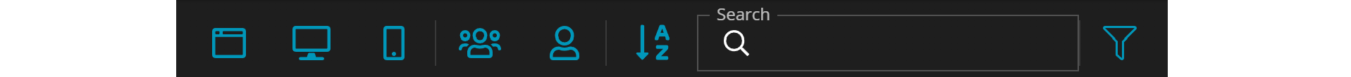 The top bar allows you to filter your apps. You can apply a filter based on the type of apps or switch between public apps and myApps. In case you have a long list, you can also search by the name of your app.