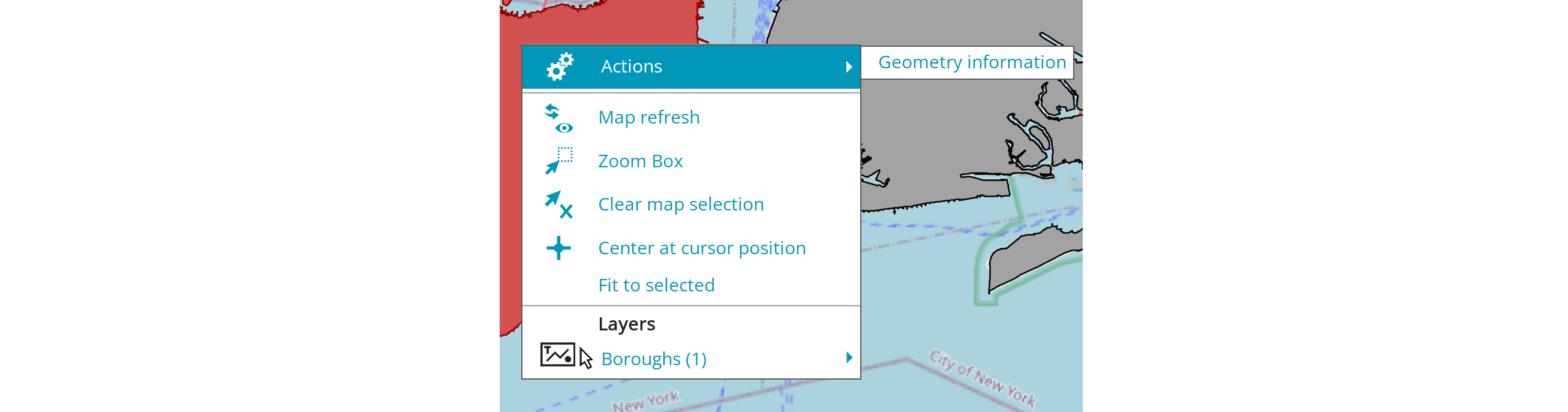As you can see, the map context menu displays the layers available at the cursor position where the right-click was done. You can now choose the desired layer and use one of the following options: