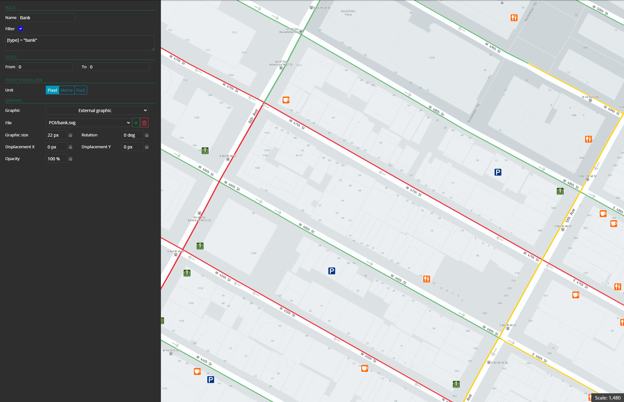 The Filter part in the Style Editor allows you to visualize the vector data based on an attribute in the database table. It is a simple WHERE clause from an SQL statement, which enables you to differentiate between styles.