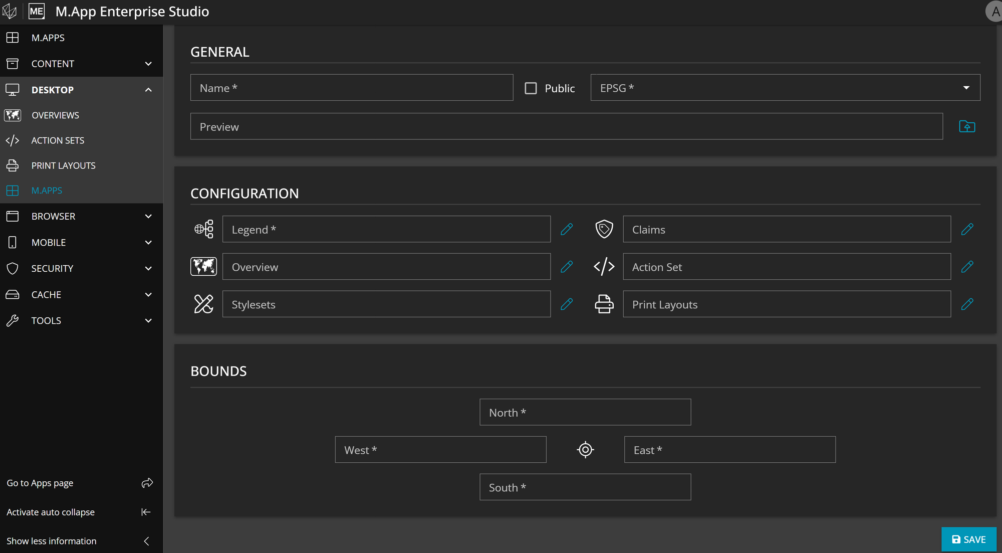 In M.App Enterprise Studio there is a button called Go to Apps page, which directs you to the Apps page. It can be found in the left side panel of the Studio.