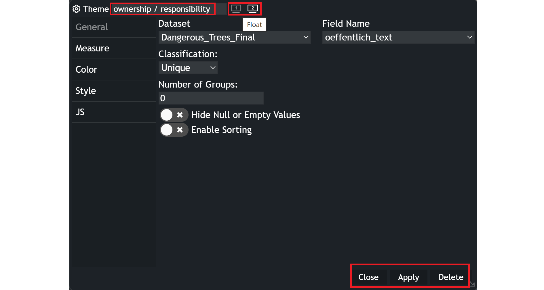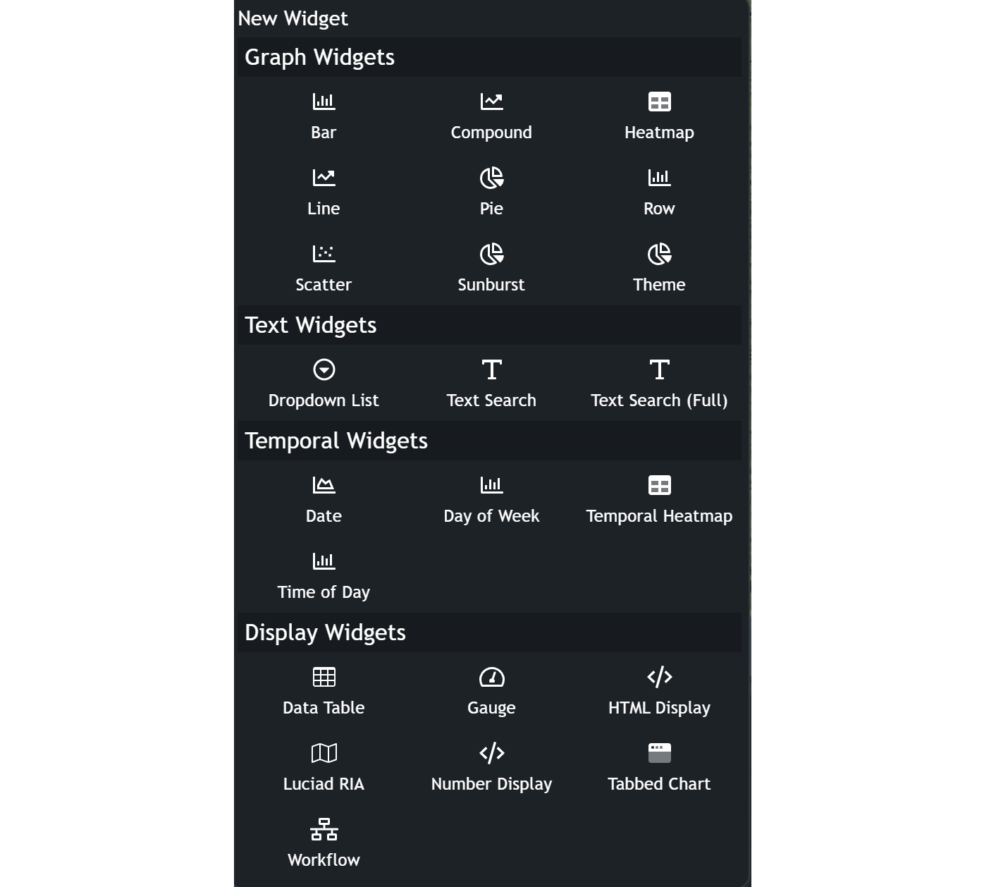 Applicable for: Bar, Compound, Heatmap, Pie, Row, Sunburst, Theme, Dayo of Week, Time of Day, Temporal Heatmap