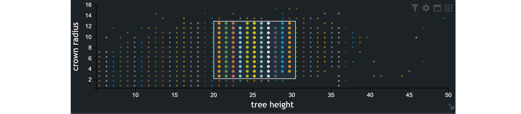 Click and drag the mouse cursor on the chart to define a selected range. This range filter will filter the map to display only the features falling within the chosen range.