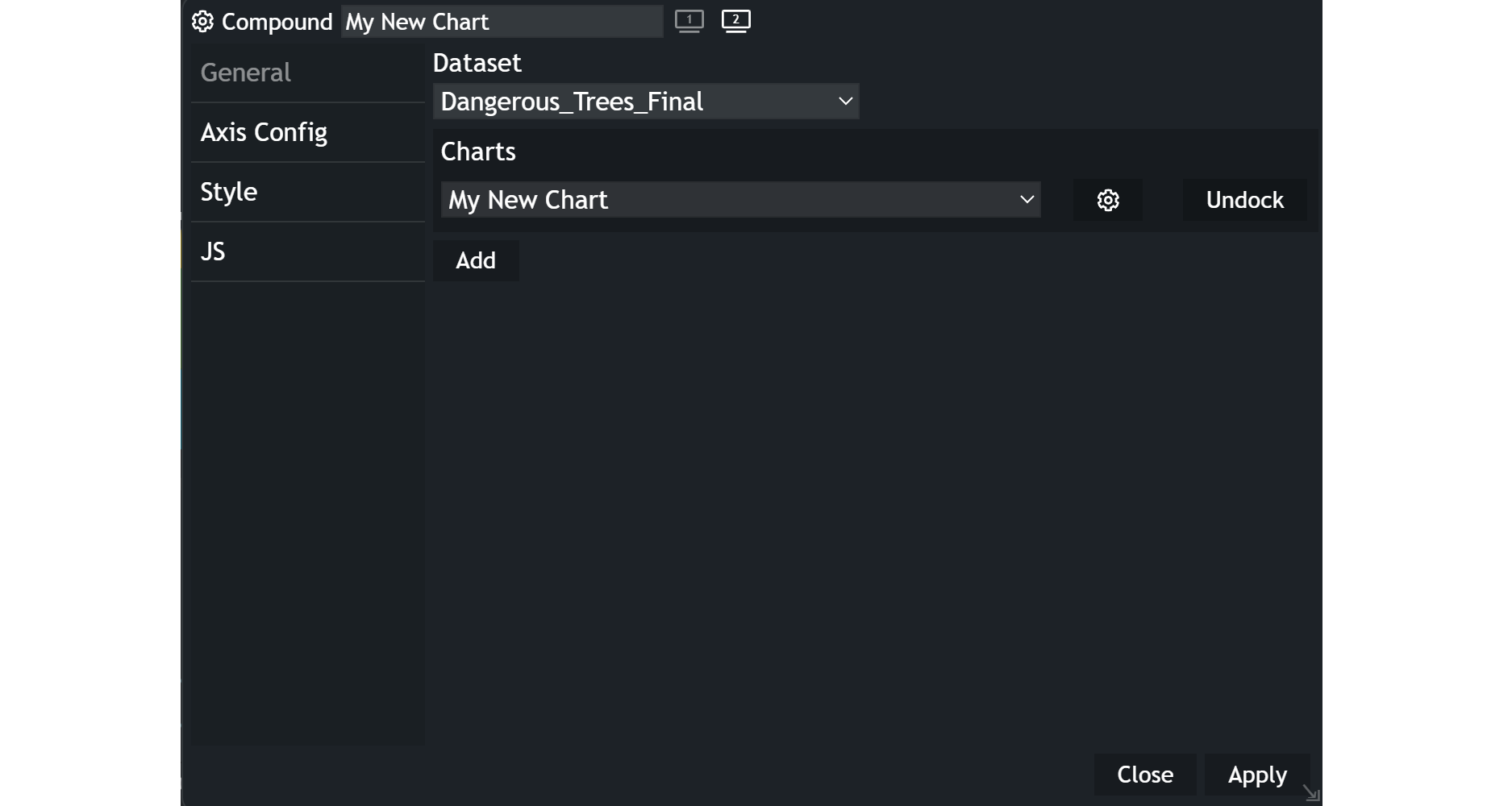 Addbutton. - Select the desired chart from the Dock dropdown list.