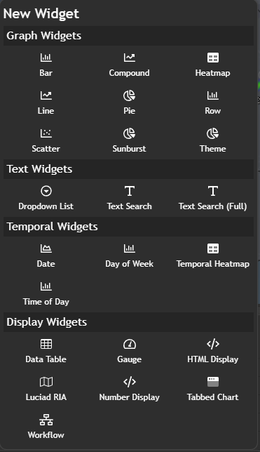 To begin, navigate to theNew Widget menu. Select Line from the list of Graph widgets.