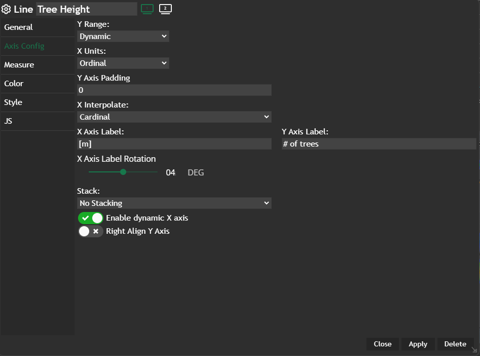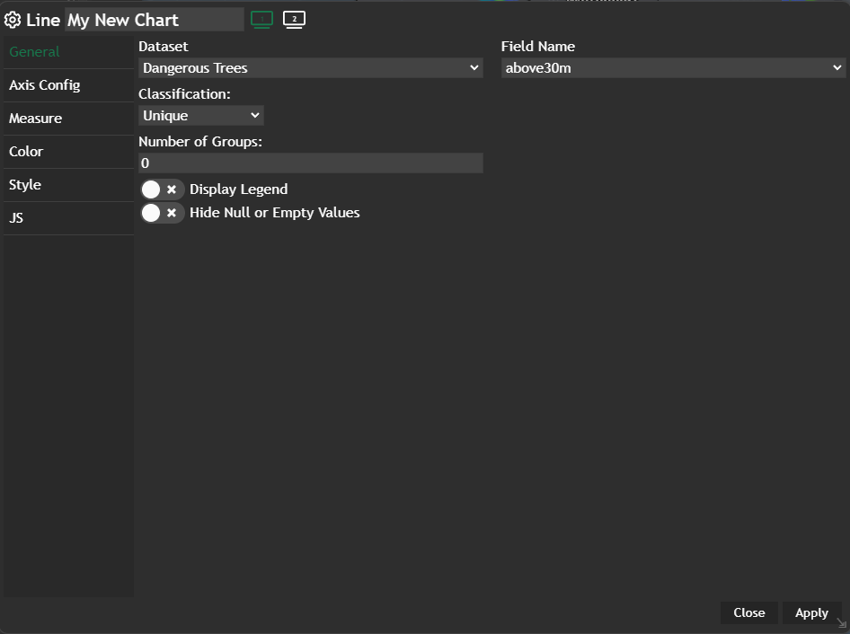 Apply and your configured chart will be displayed in a new widget.