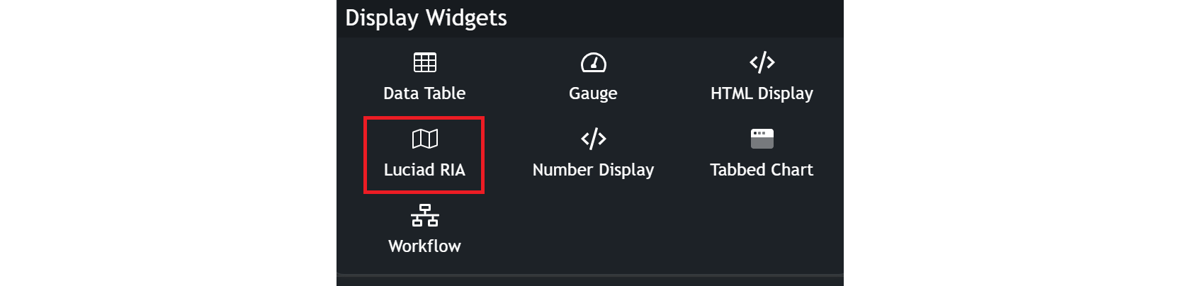 Another way to display a map in your Dashboard, is to create a Luciad RIA widget. Just navigate to the new widget menu and select Luciad RIA from the Display widgets.