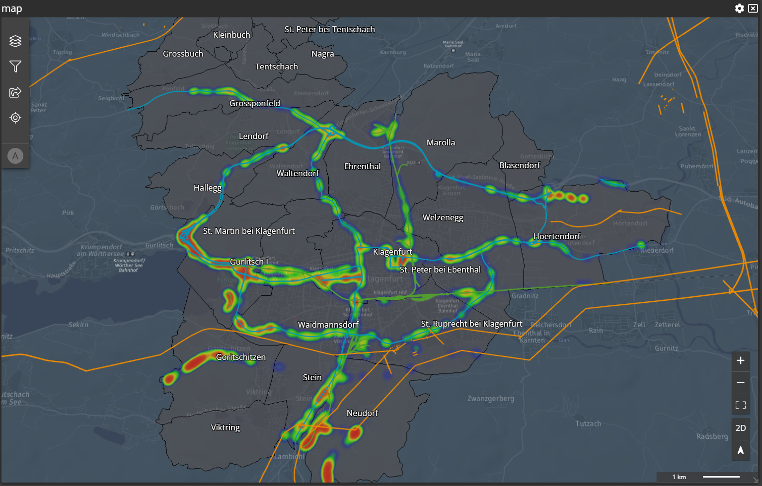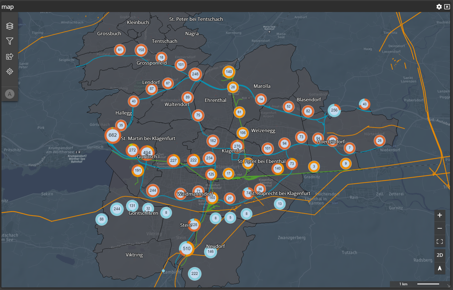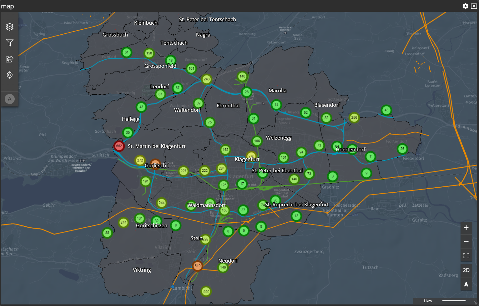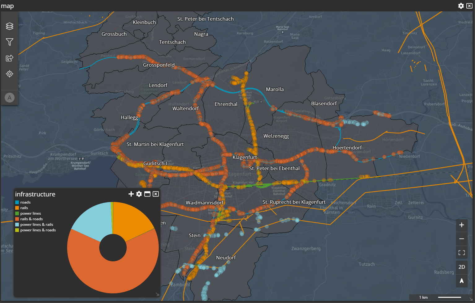Per default this is the way to go, if you want to use the geometries / data for your widgets within Dashboard. The next screenshot shows an example of trees dangerous to public transportation / road network.