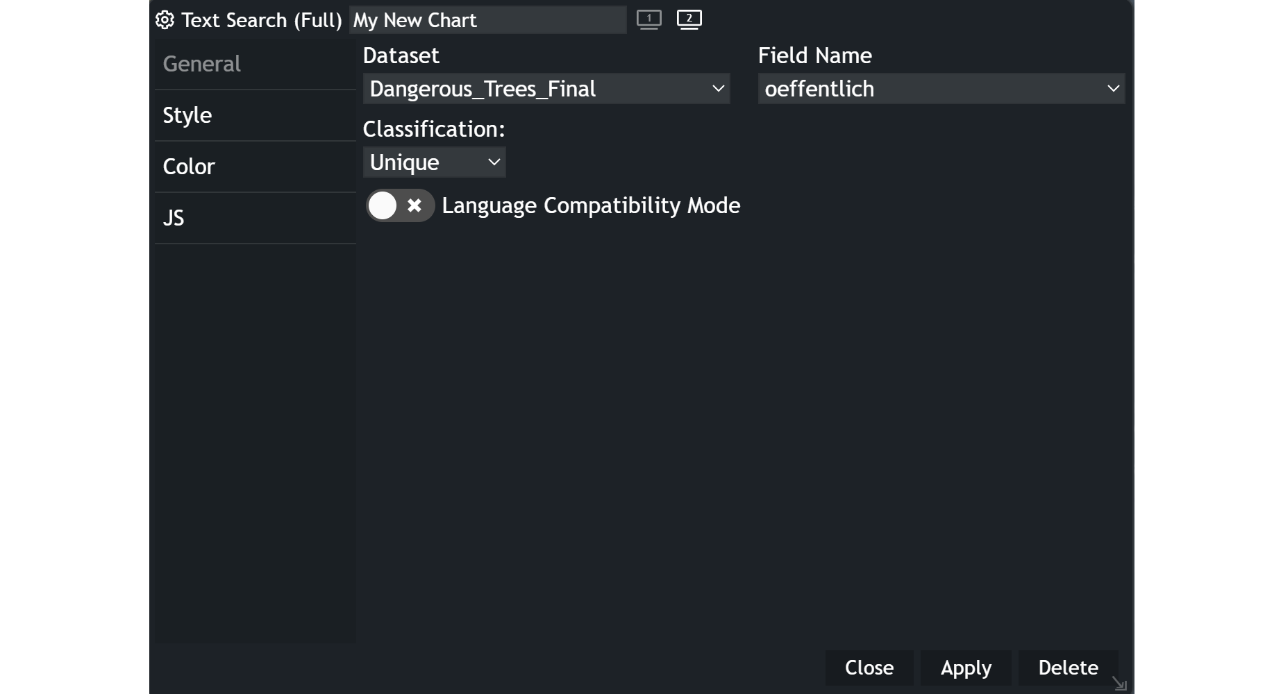 Text Search (Full) in Dashboard