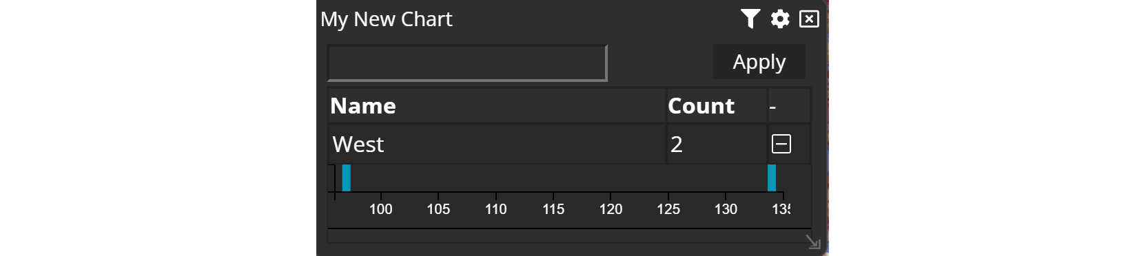 Click Apply to set the filter. Once the filter has been applied, a small table will be displayed. This table shows:
