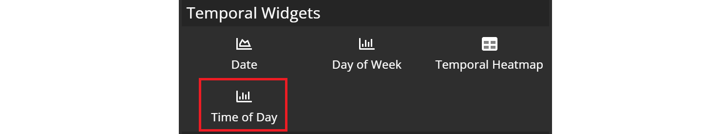 To begin, navigate to the widget menu and select Time of Day from the list of Temporal Widgets.