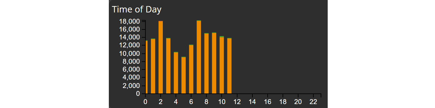 The Time of Day chart simplifies data exploration and enables you to analyse data within specific hours of the day.