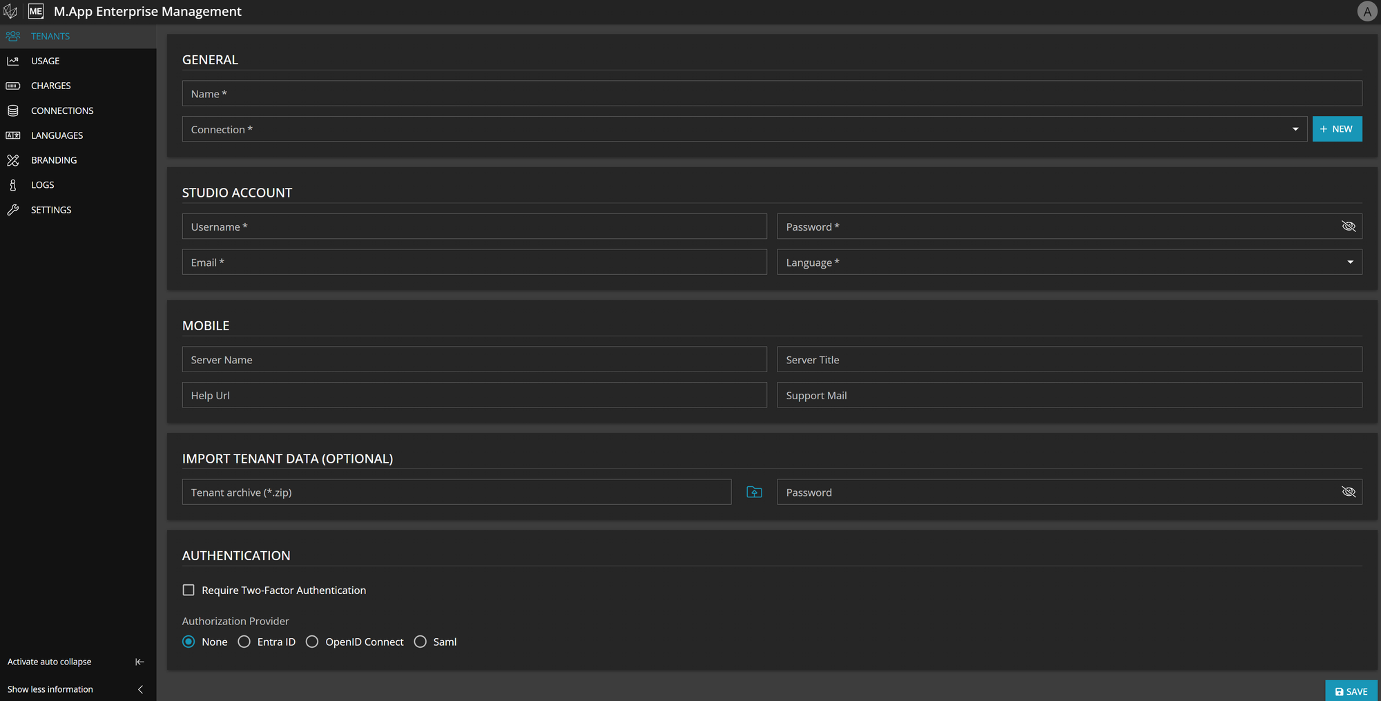In this post we will guide you through importing or exporting a tenant in Management of M.App Enterprise.