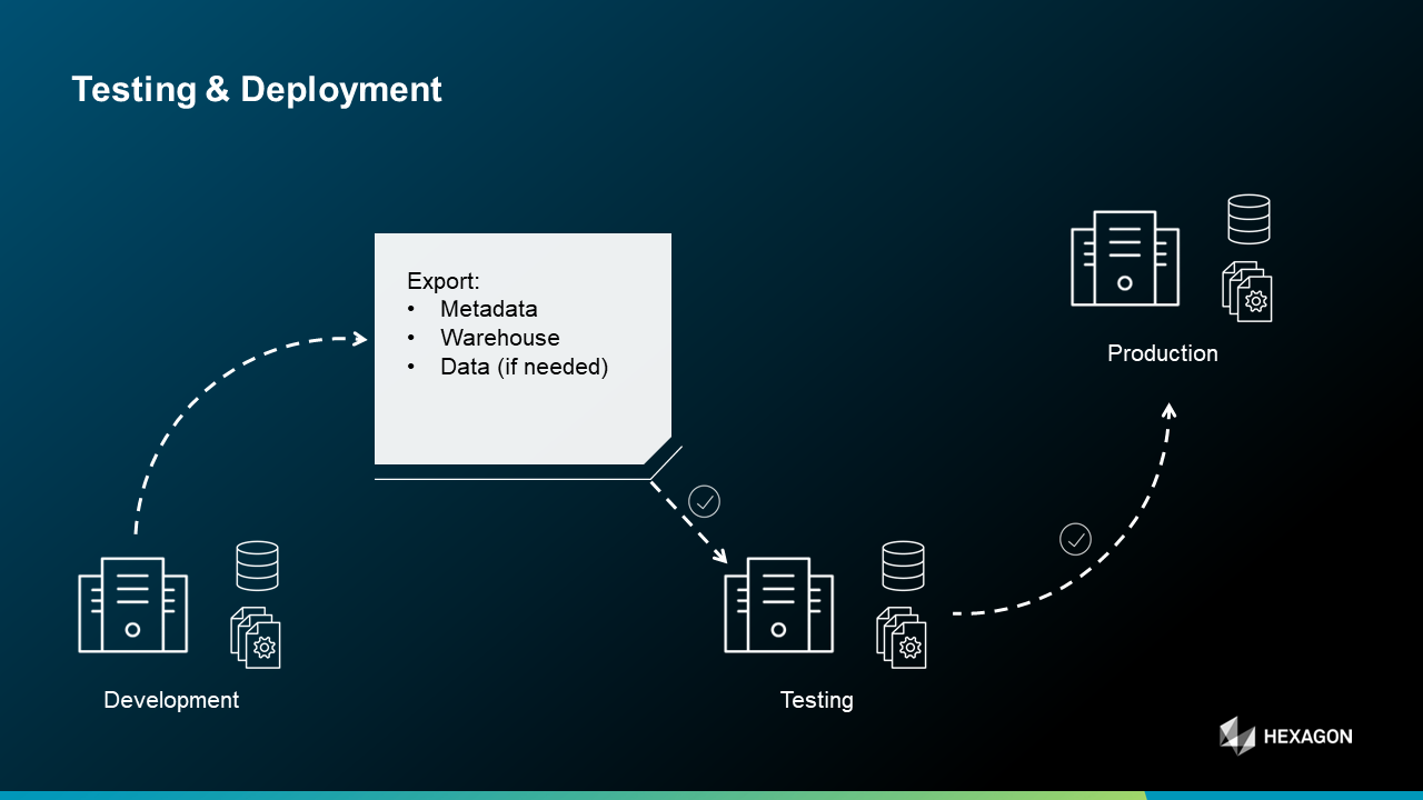 If it comes to Testing & Deployment we recommend the process seen in the next screenshot: