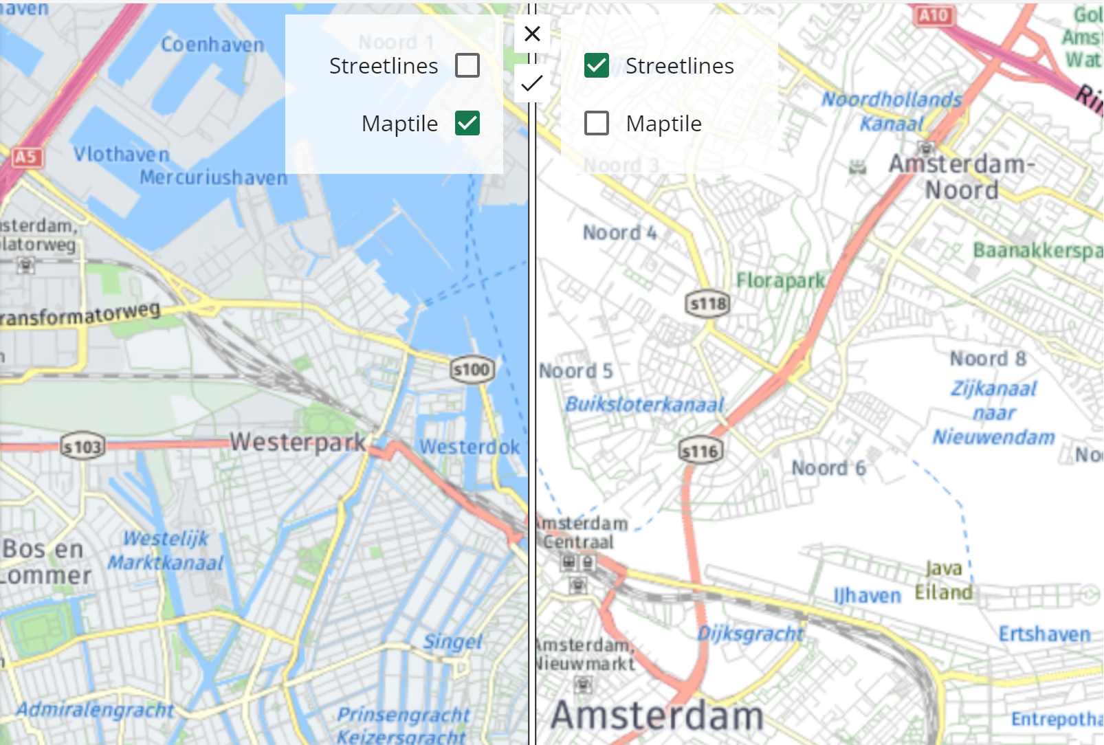 Based on the choice of the type you can select the tile type accordingly, which gives a number of options again. The different options target the geometries that are then included in the service. For example, street lines returns an image that contains only street lines and labels.