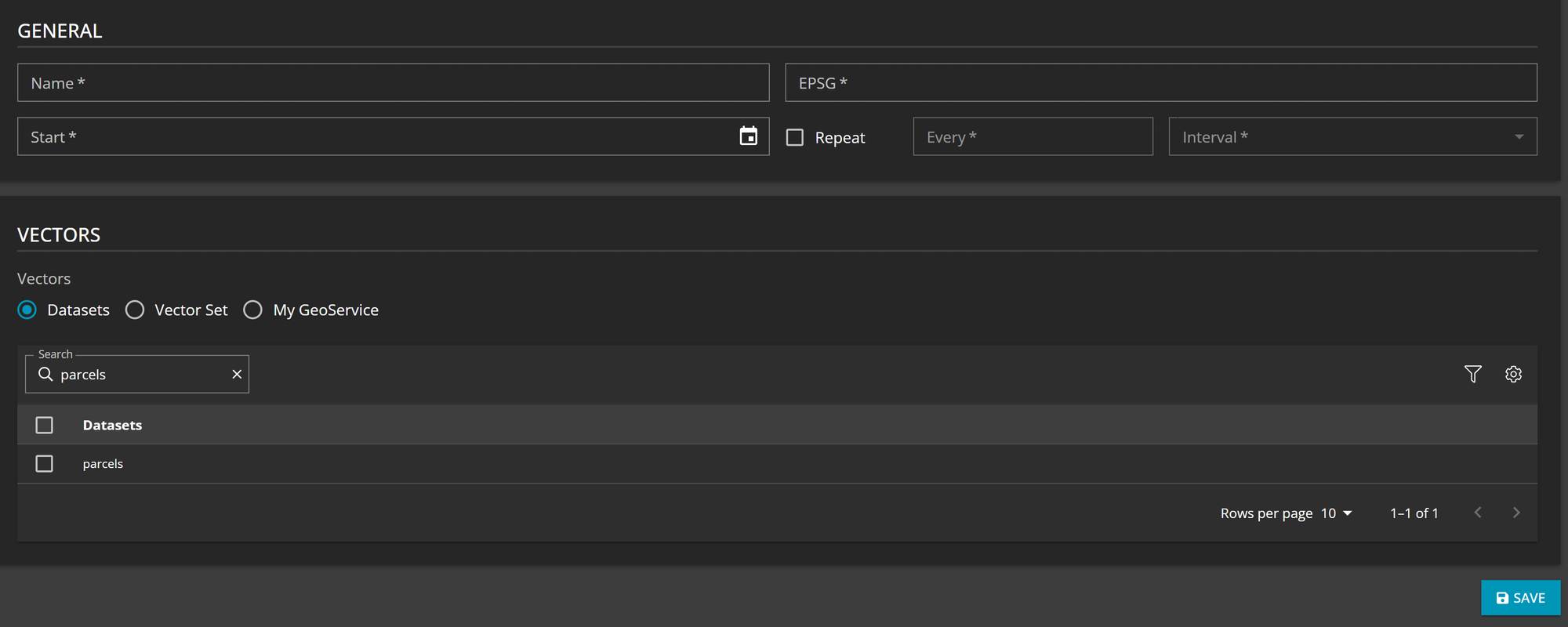 EPSG: In which coordinate system should the data be publishedStart: Definition of when the Job should be startedInterval:- Hour