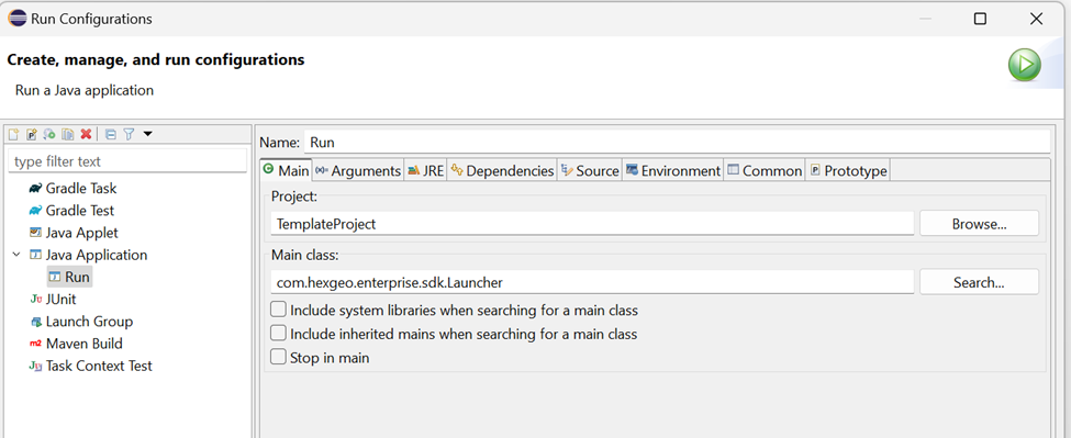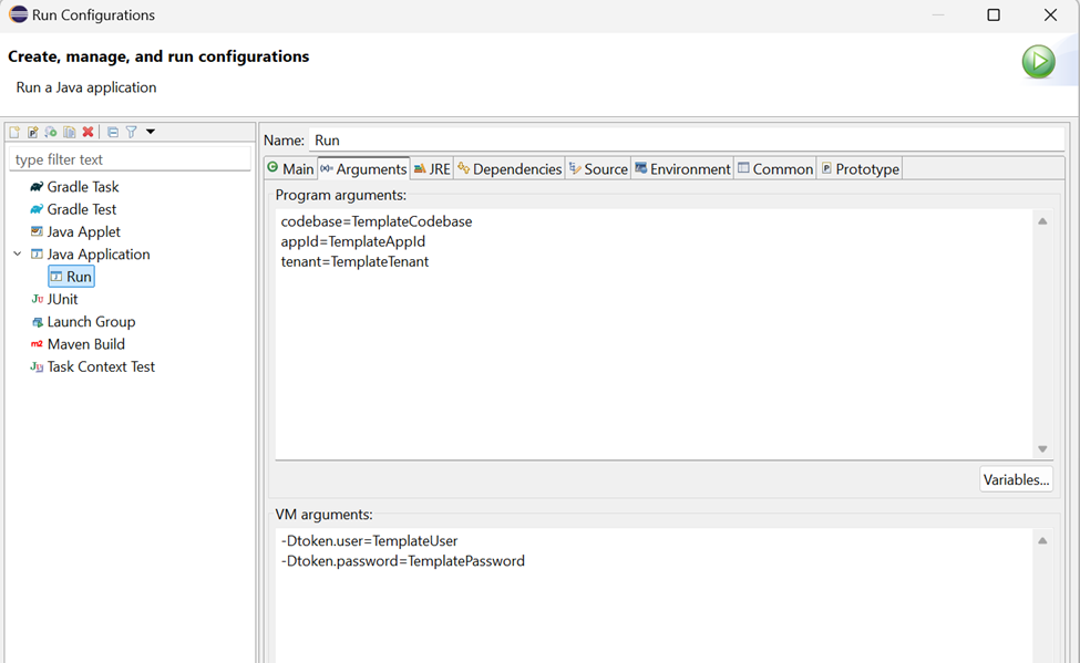 - Create a new Run Configuration with the following setup