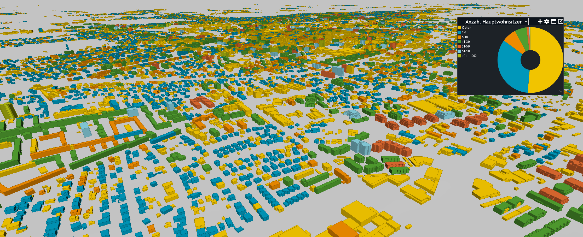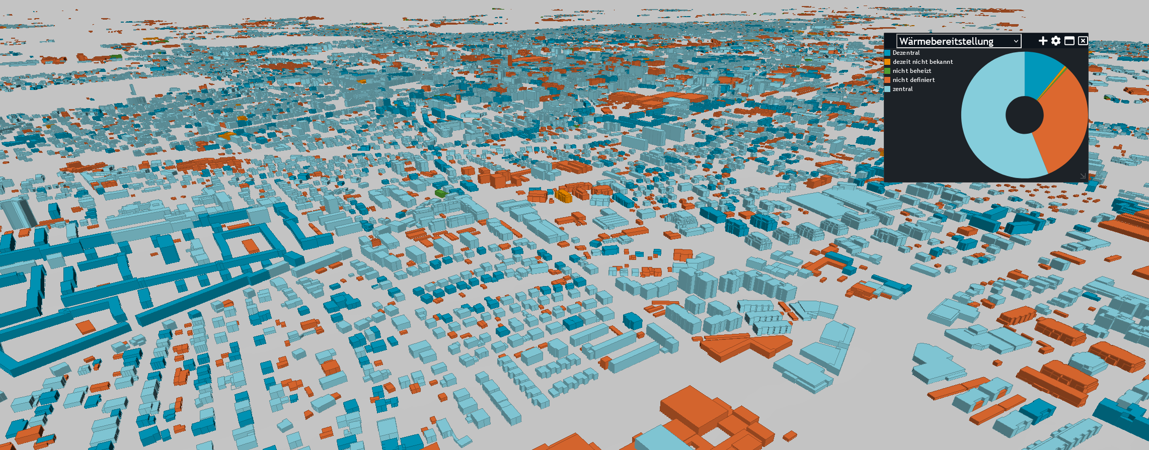 For this vector data the height information is available as well and therefore we are extruding the geometries.