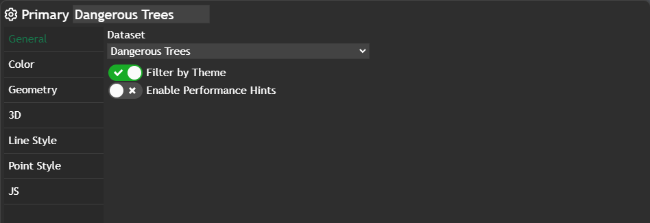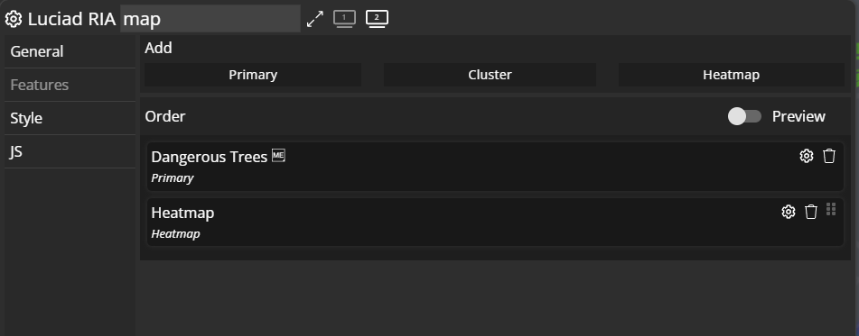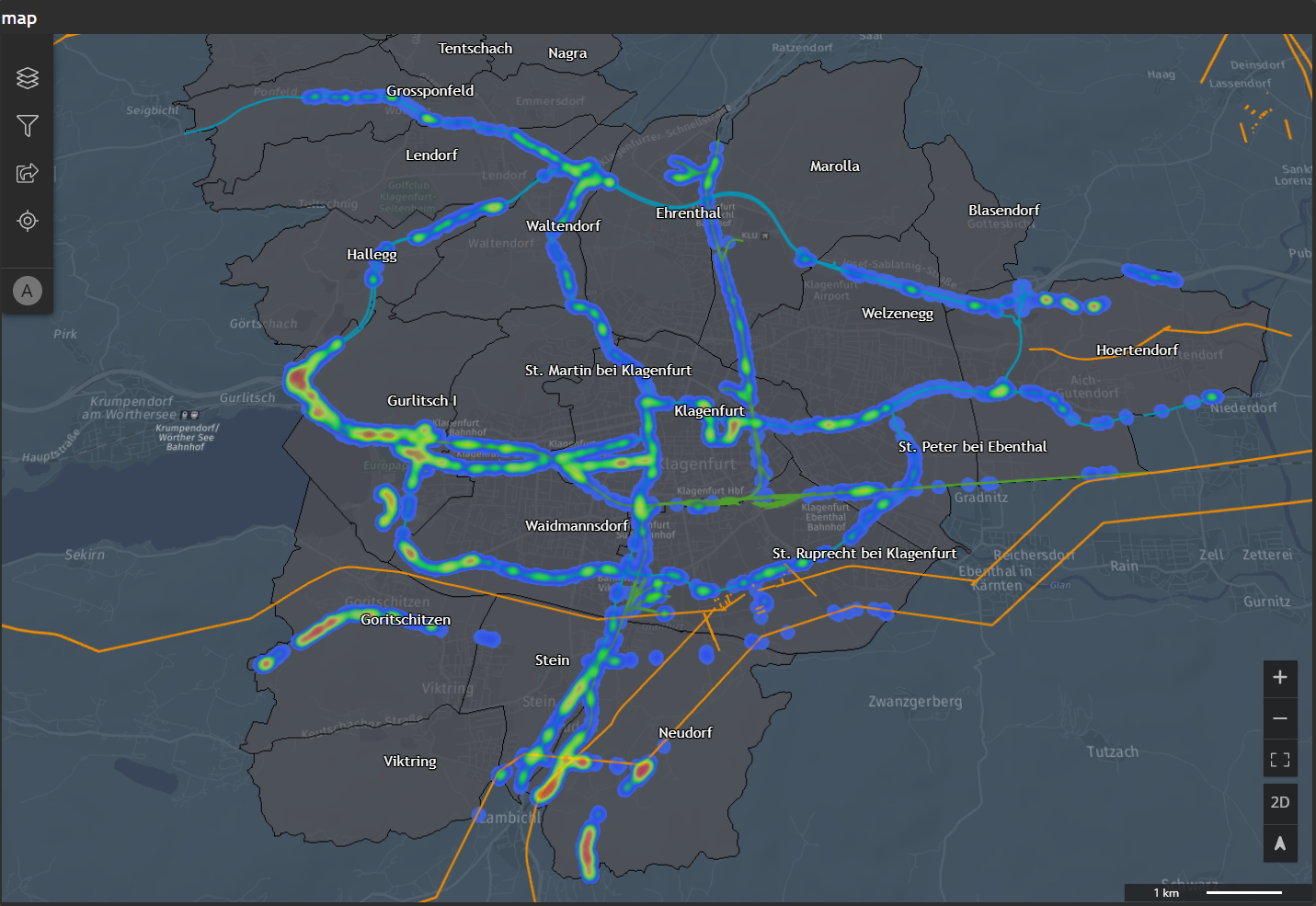 In this tab you'll see thePrimary features, which is the default definition of Analyzer layers set at the beginning of your Dashboard journey. But here you have to chance to add a Heatmap layer as well, which gives an additional improvement of understanding and knowledge in the Dashboard application. By clicking on Heatmap you will come to the settings described further down the post.