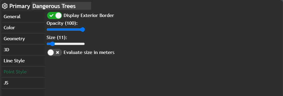 In this tab setting theSize to a specific value and also set the Opacity to 100