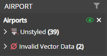 In this example we will style the vector layer Airports which shows all landing fields in New York / New Jersey.