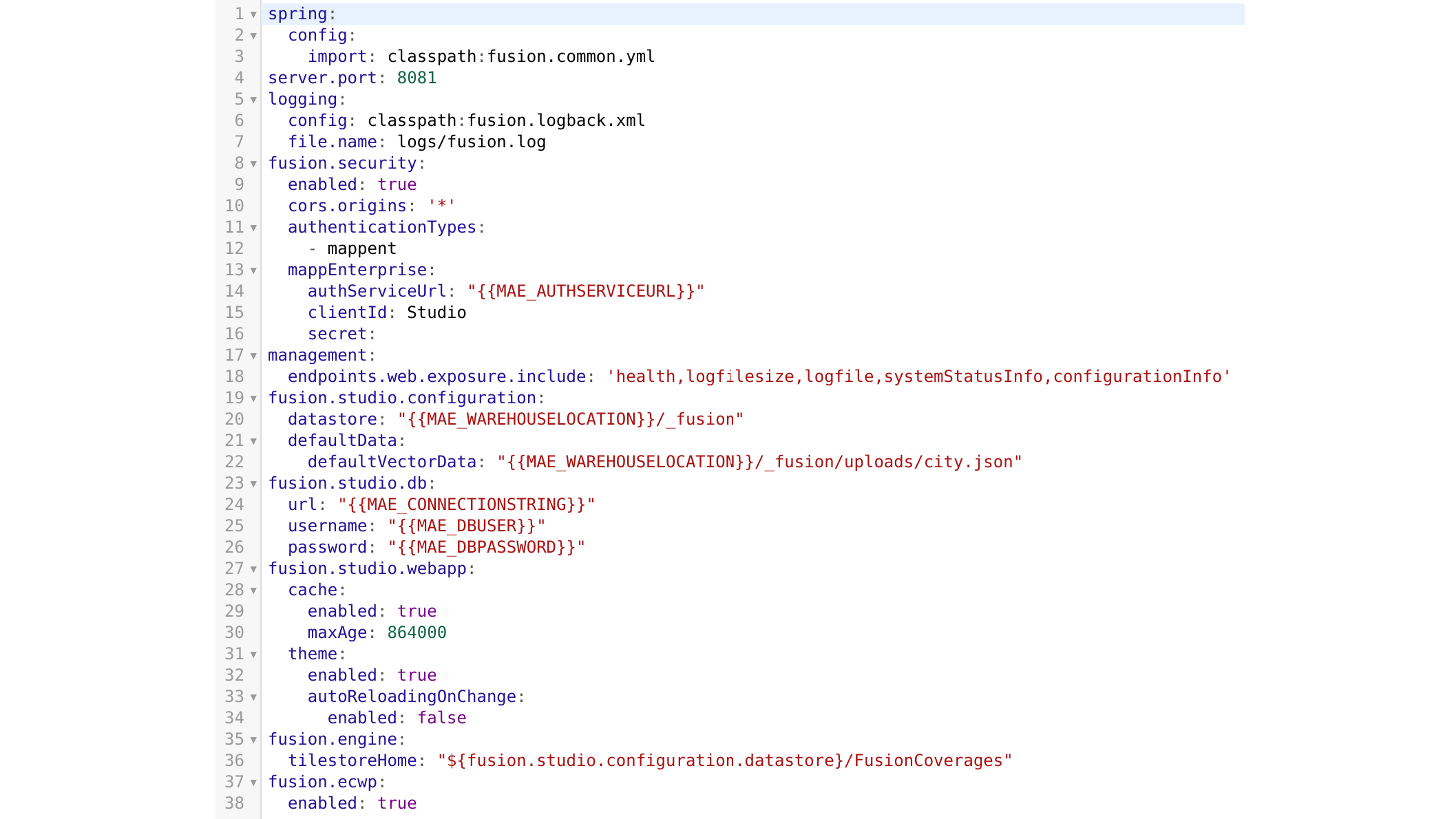 Before running the setup file, it is necessary to set the environment varibales in the .yml file. Therefore, navigate to your Luciad Fusion setup folder and Resources and then open the application-fusion.production.yml.