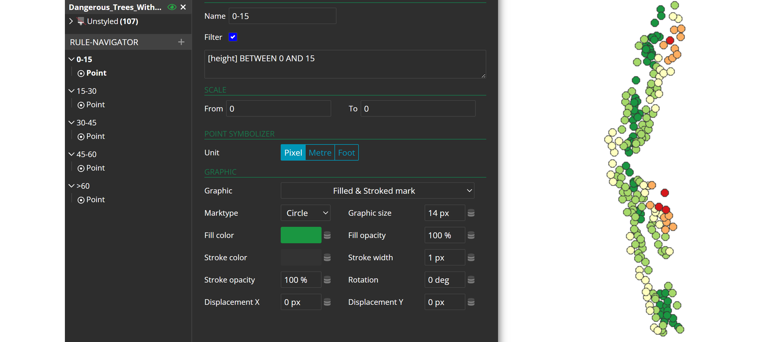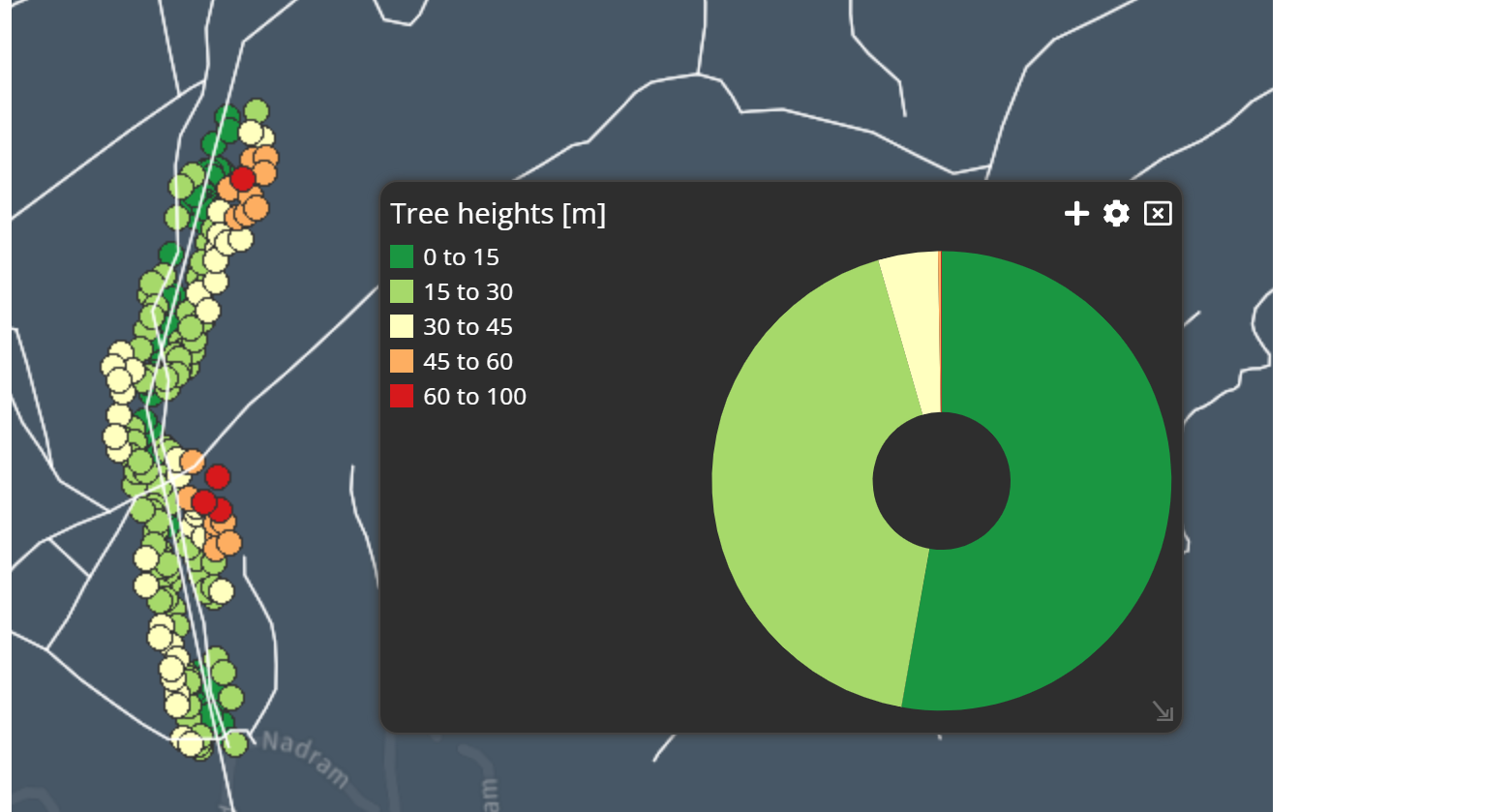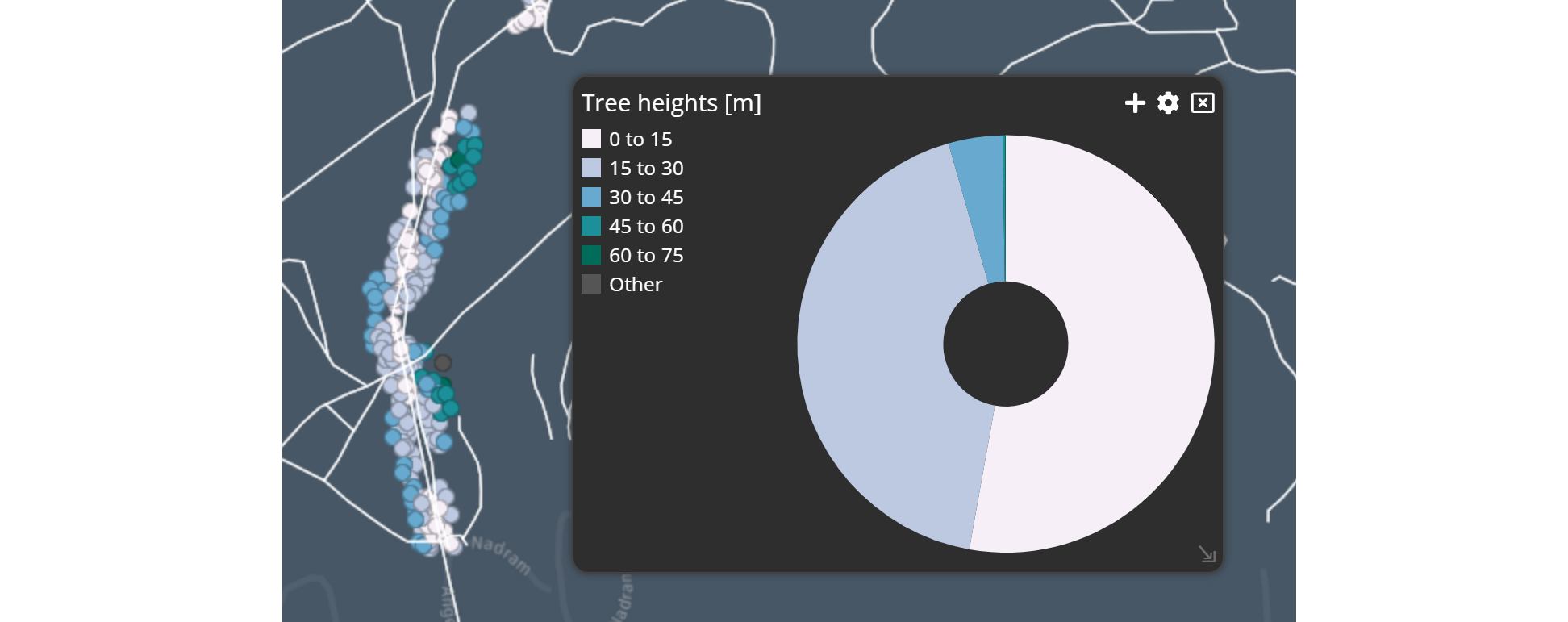 Once you have applied the style, you will see the coordinated widgets. The geometry points in the map are matching your theme chart.