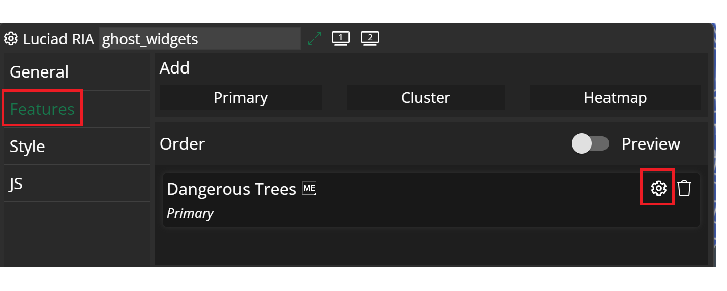 Luciad RIA widget → configuration → features → settings