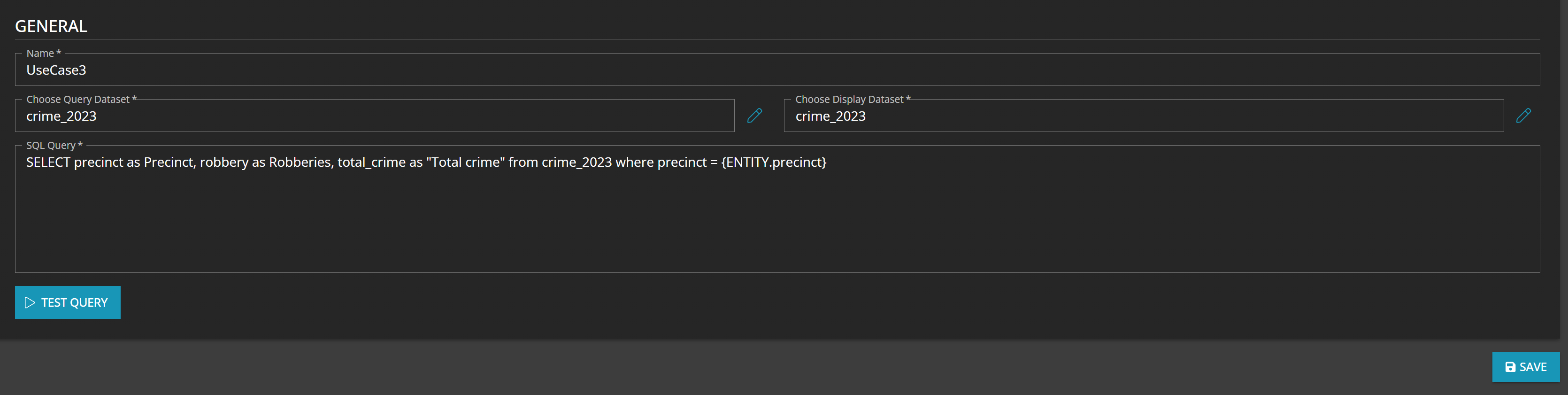 Navigate to Desktop → Queries → New. Name your Query "Crime in NYC", choose the Crime 2023 dataset for both the query and the display dataset.